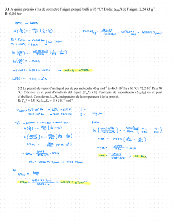 Tots els exercicis (tret d’un) resolts del tema 3 de fisicoquímica