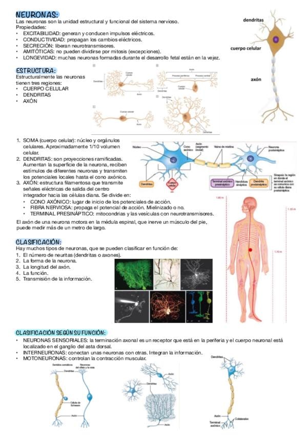 Trabajo práctico resuelto. Fundamentos de neurofisiología: desde división del sistema nervioso hasta los mecanismos de sinapsis y neurotransmisores. Potencial de acción; médula espinal; decusación de las vías motoras; arco reflejo y los receptores muscula