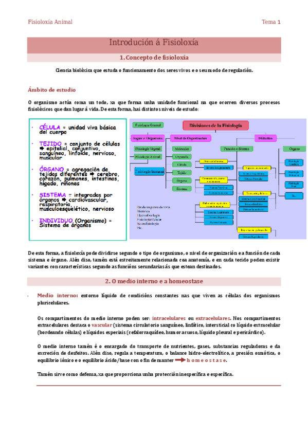 Fisioloxía Animal I Apuntes Temas