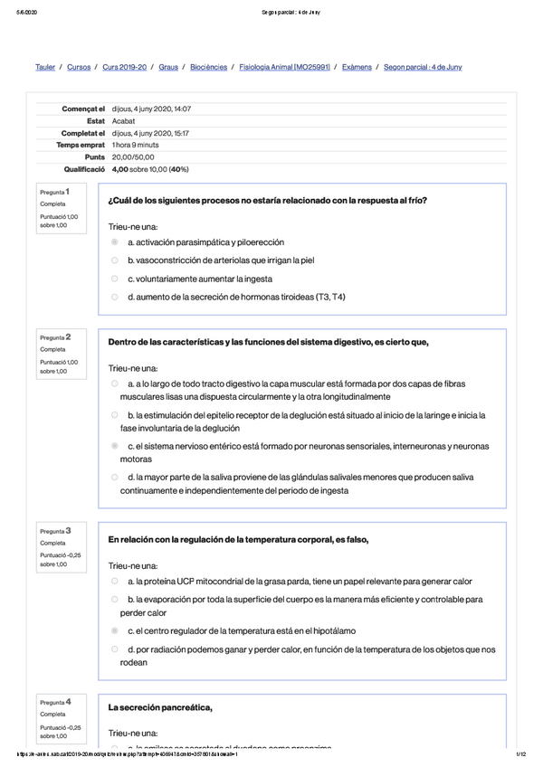 He publicado nuevos examenes de 4º Fisiología Animal: Sistemas: exámenes fisio + seminarios