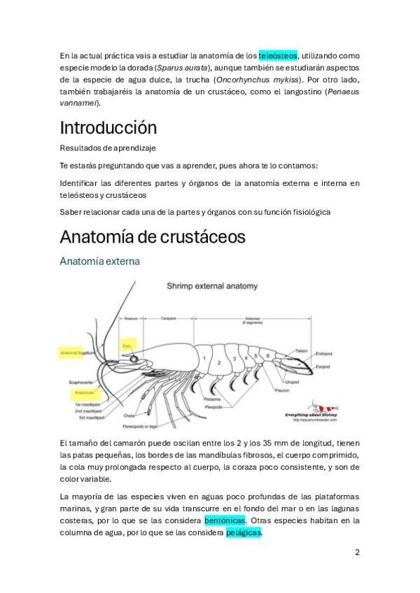 Apuntes para examen del 2º Cuatrimestre. Práctica de: Histología, Dorada, Langostino, Conejo y Reproductor Y ejercicios.