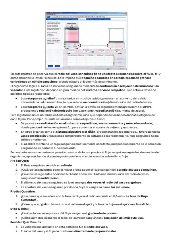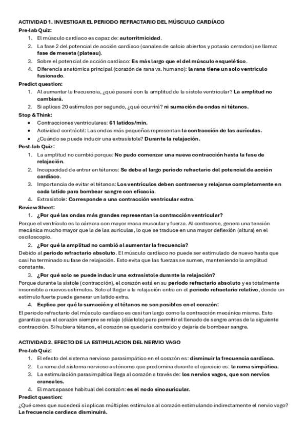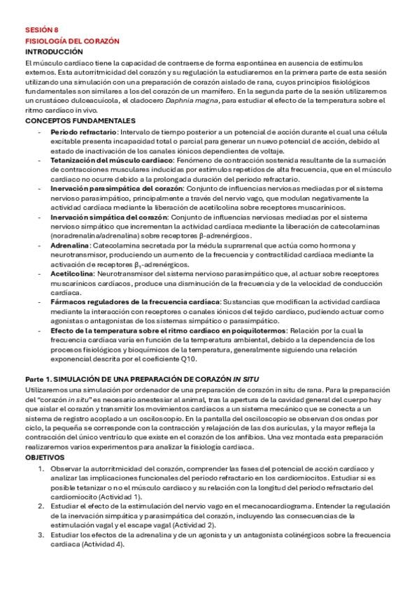Apuntes de la práctica 8 (Fisio del corazón) de Fisio animal. Están todas las actividades del PhysioEx con el tipo test y resueltas.