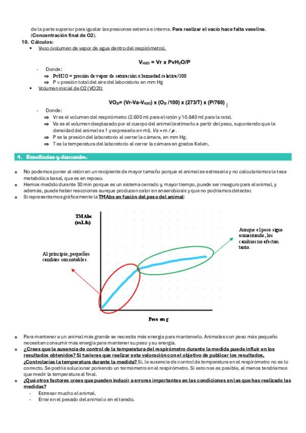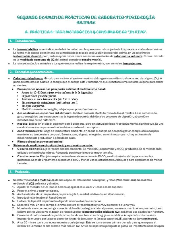 Apuntes de la práctica 6 (Tasa metabólica) de Fisio Animal. Tenéis todo el procedimiento con los cálculos a realizar resumidos en una imagen. Además, se resuelven diferente cuestiones que pueden plantearse de cara al examen.
