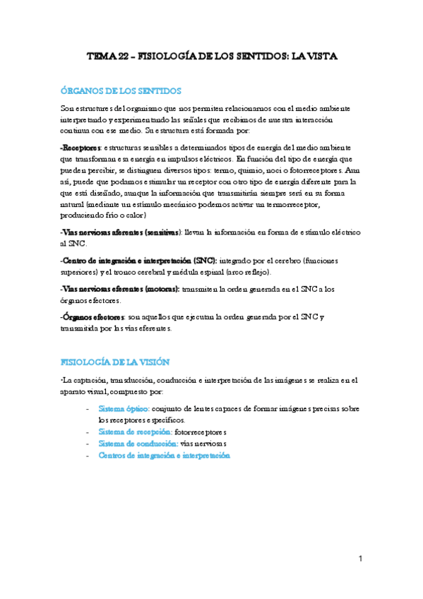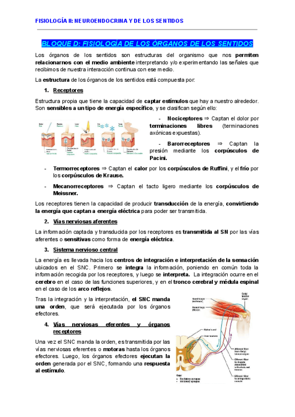 Todos los temas del bloque de fisiología de los sentidos
