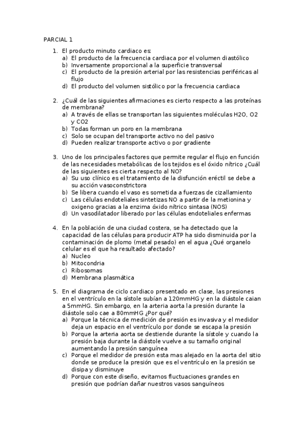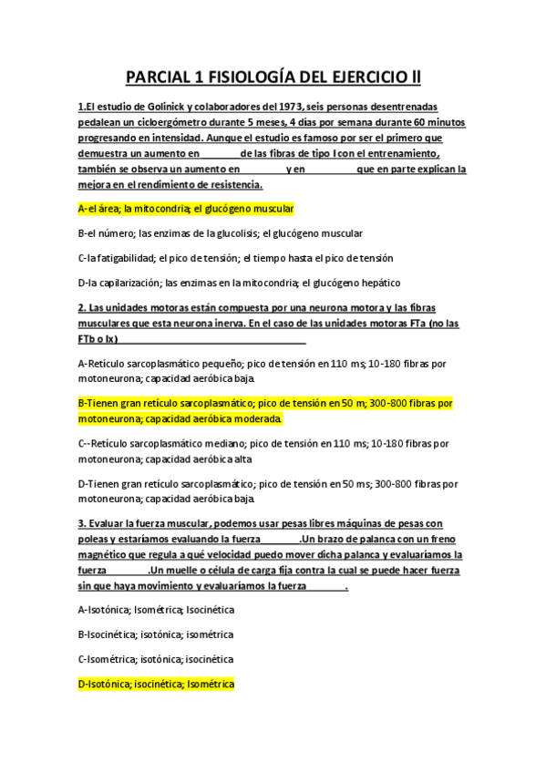 Simulacro Parcial I Fisiología del Ejercicio I