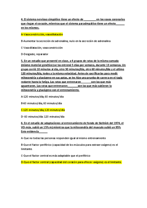 Preguntas pruebas de progreso clase de Fisiología del Ejercicio I
