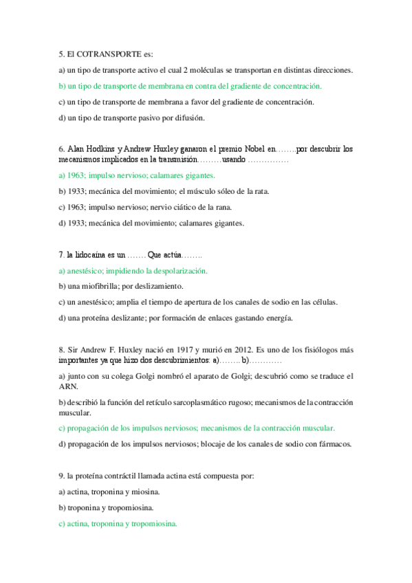 Exámenes Fisiología 1º Cuatri