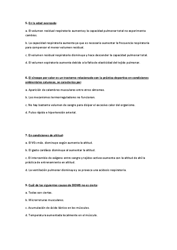 Examen de fisiología del ejercicio