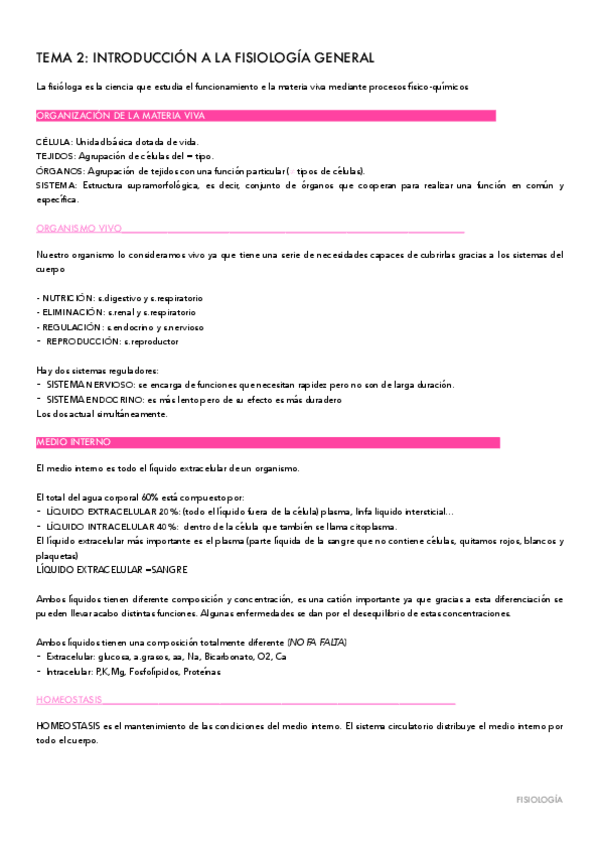 TEMARIO FISIOLOGÍA GENERAL