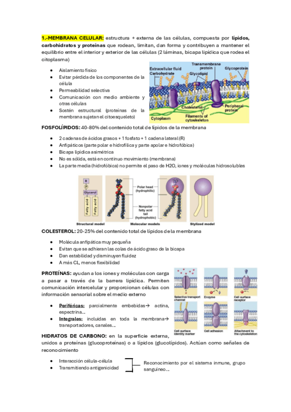 Bloque 1 membrana plasmatica, homeostásis y sistemas de retroalimentacion