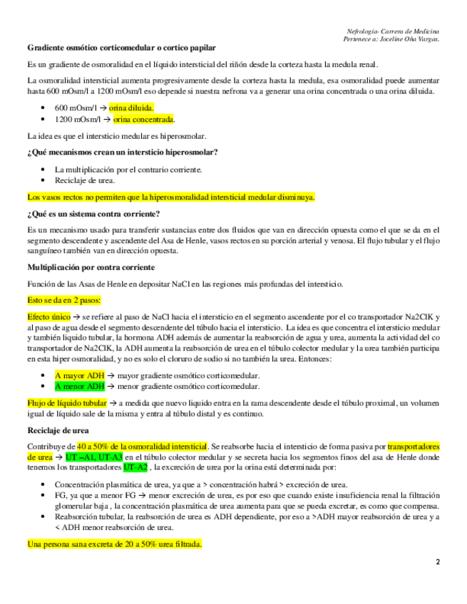 Resumen general de la fisiología renal a nivel : concentración y dilución de orina.