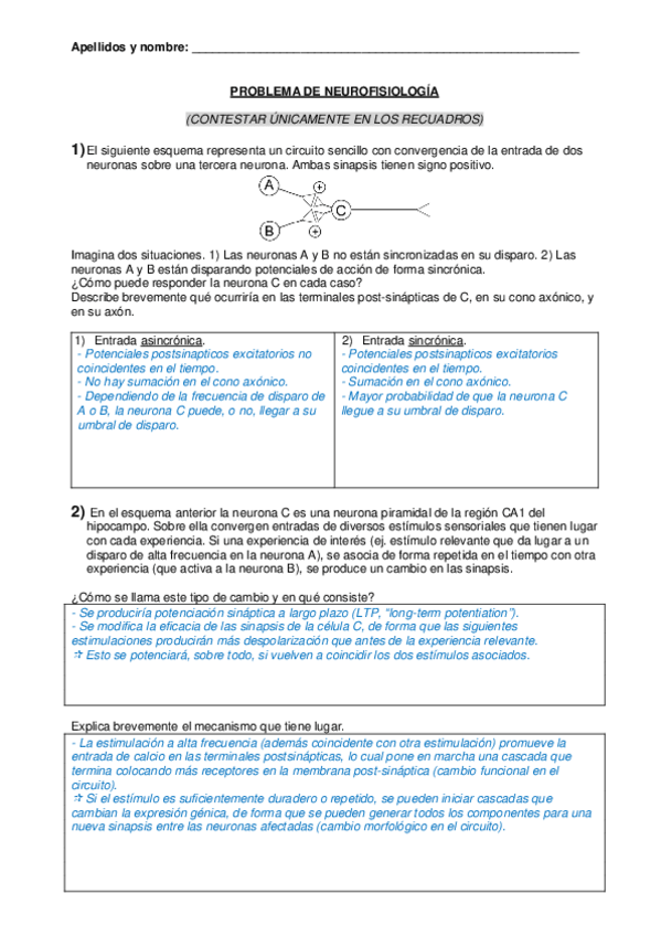 Recopilación de las preguntas de Neurofisiología hechas por los estudiantes. La pregunta 30 está mal corregida, la op correcta es la B