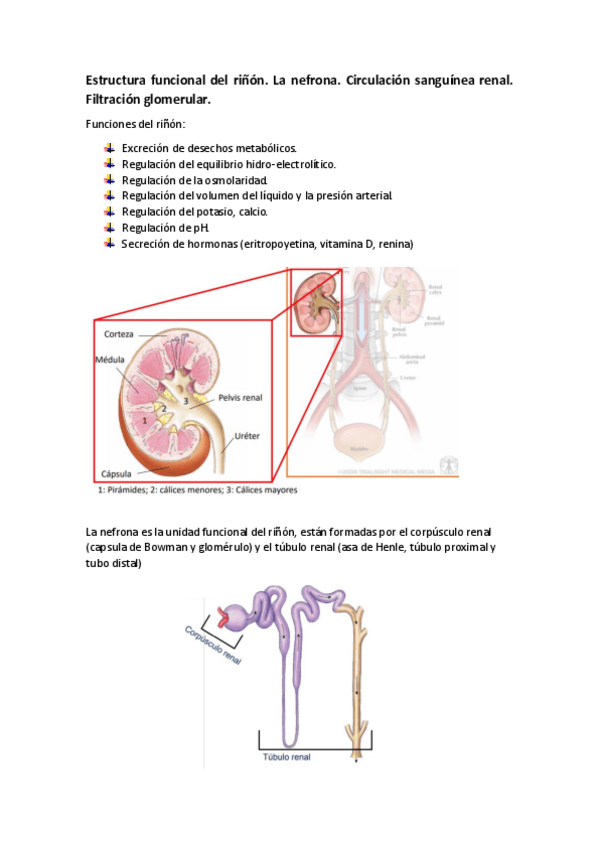 Estructura funcional del riñón. La nefrona. Circulación sanguínea renal. Filtración glomerular.pdf