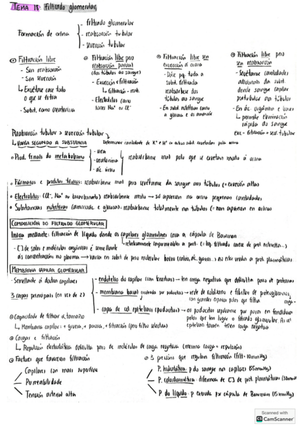 Esquema del tema 18 de fisiología humana de 1º de enfermería. Filtrado filtración glomerular. Bloque del sistema aparato urinario