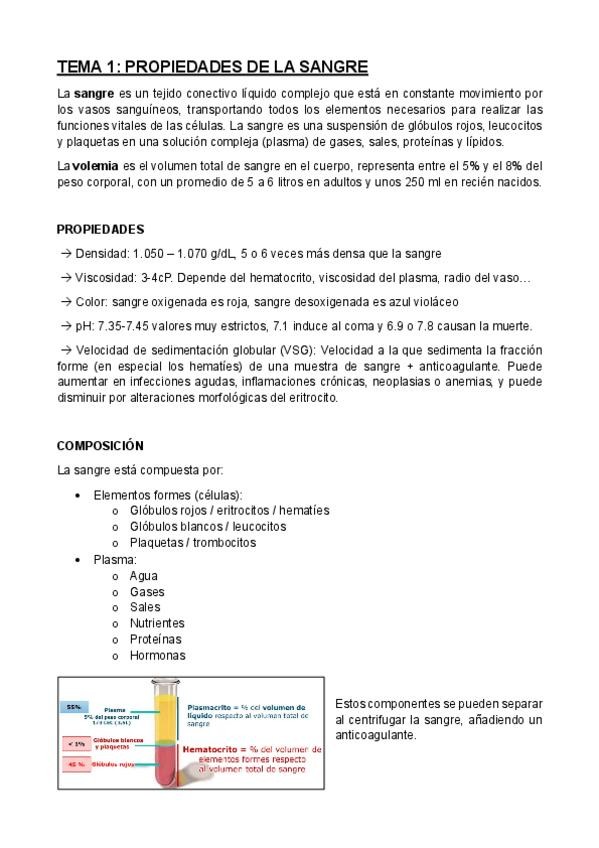 Esquema resumen completo con la información más importante para estudiar el tema de hematología.