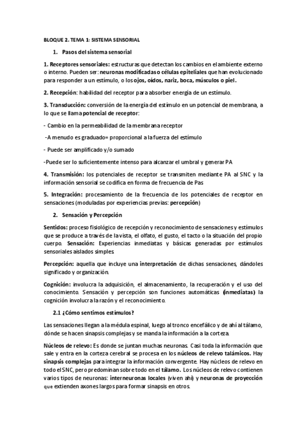 Unidad 2 Fisiología Sensorial