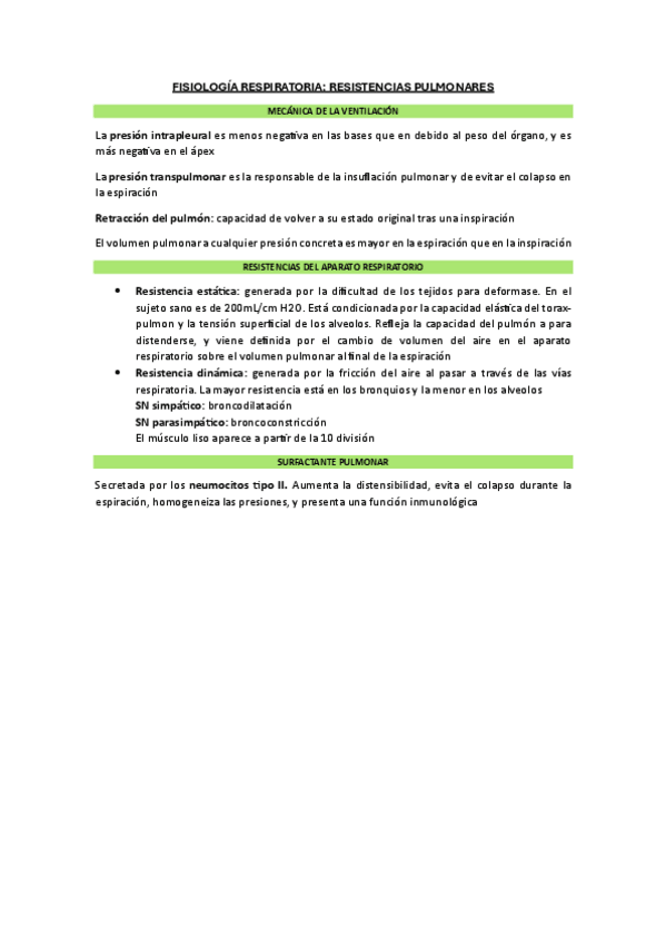 He publicado nuevos apuntes de 2º Fisiología Humana: Resúmenes BLOQUE S.RESPIRATORIO
