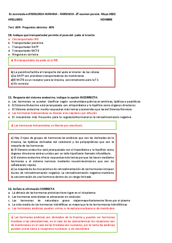 He publicado nuevos apuntes de 2º Fisiología Humana: 2 EXAMEN FISIO (parte test)