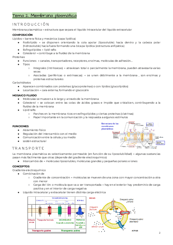 TEMA 2 Mb plasmática estructura y transporte resumen