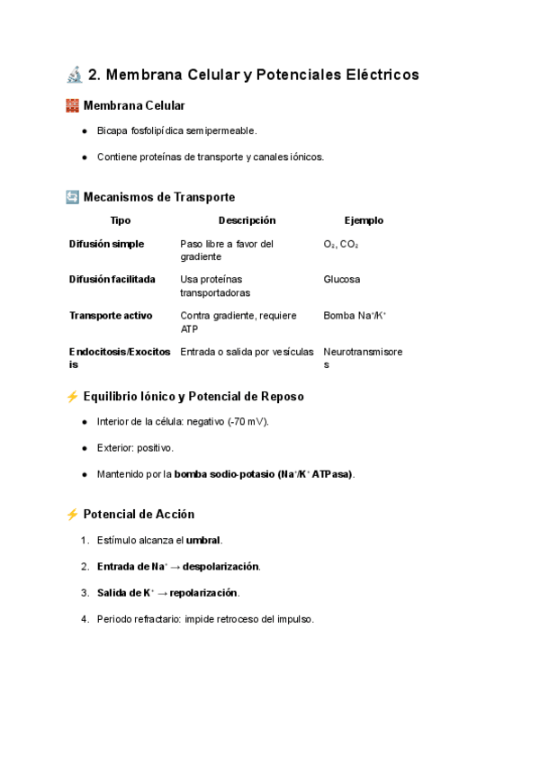 Apuntes claros sobre membrana celular, transporte, ósmosis, potenciales y acción nerviosa. Incluye casos clínicos, esquemas y test de repaso. Ideal para exámenes de fisiología.