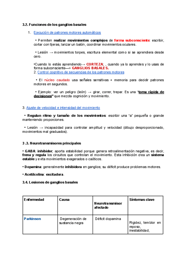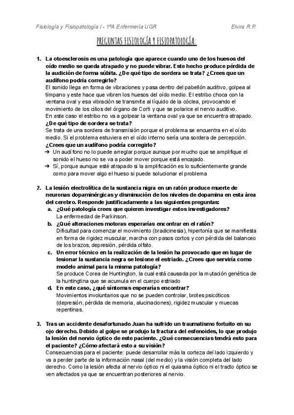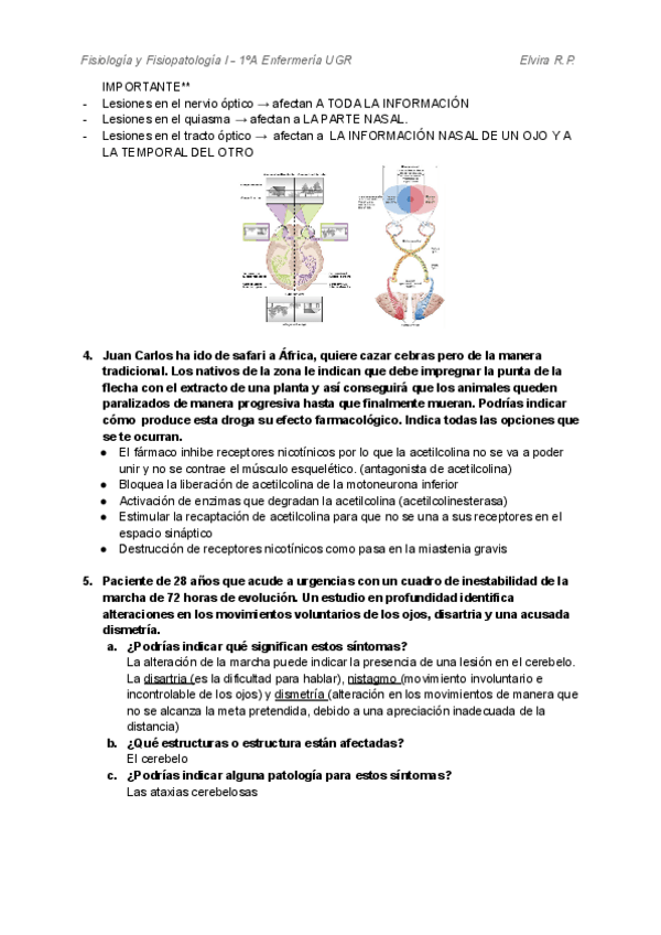Ejercicios hechos en clase sobre fisiología y fisiopatología del sistema nervioso