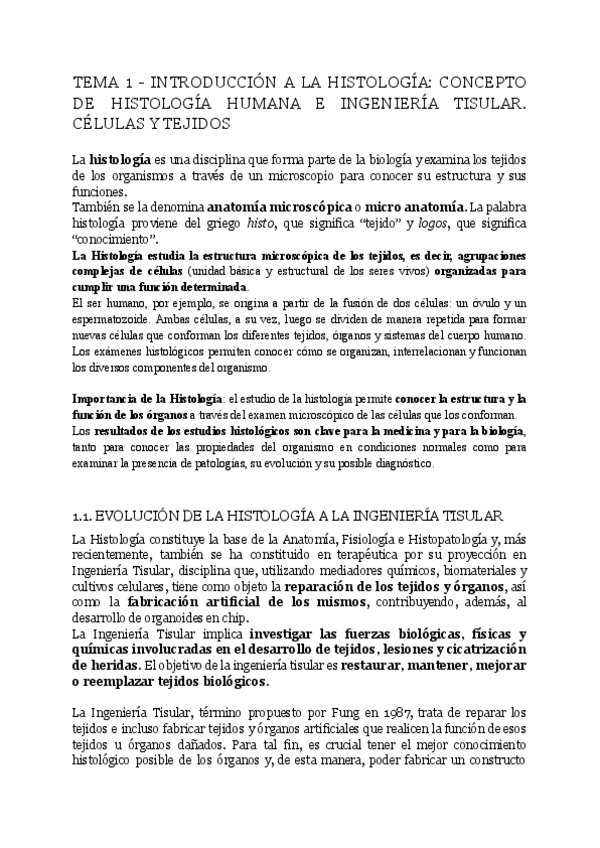 Se encuentra el temario completo referente a la parte de histología de fisiología I, del curso académico 2025-2026