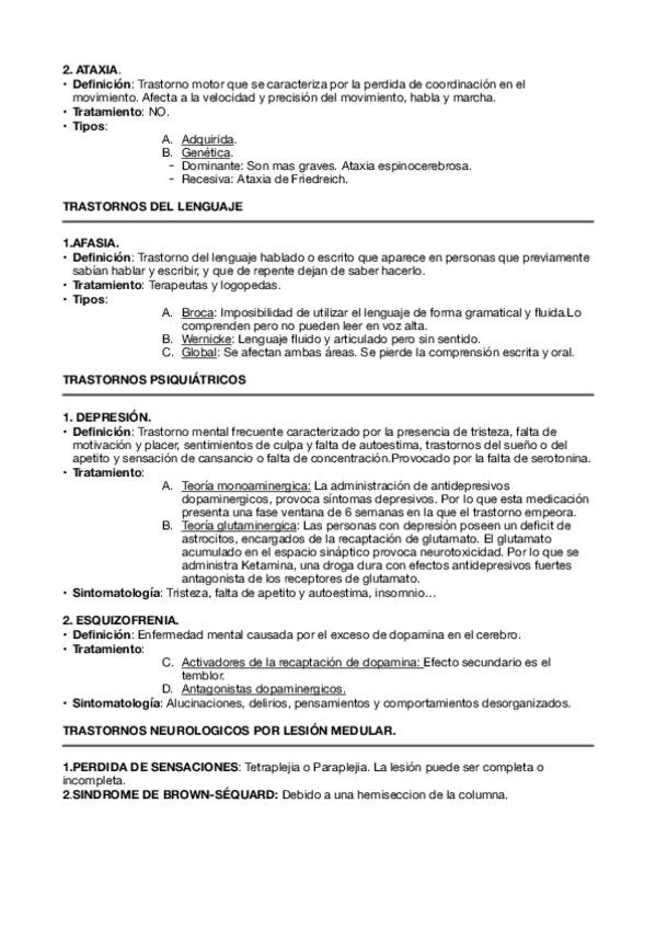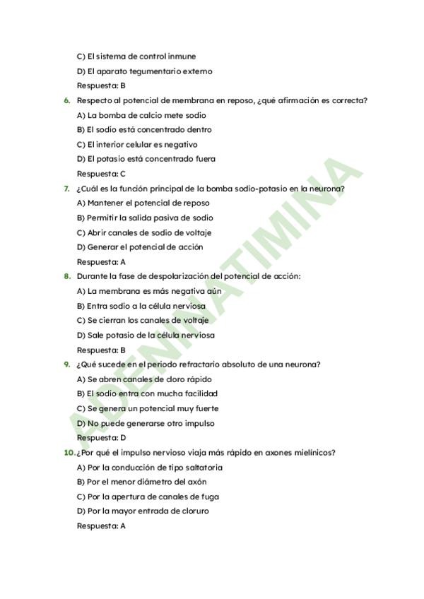 Ejercicios hechos en clase sobre fisiología y fisiopatología del sistema nervioso