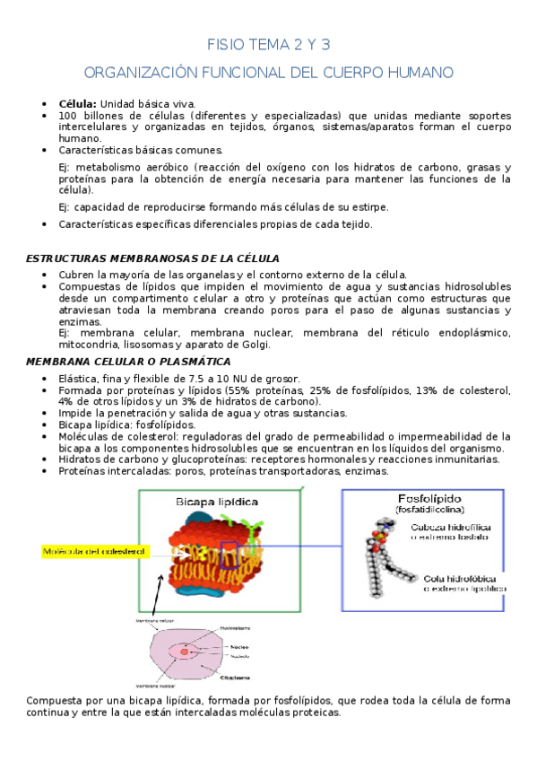Primeros 4 temas de Fisiología I Tema 1: INTRODUCCIÓN. CONCEPTO DE FISIOLOGÍA. Tema 2: ESTRUCTURA CELULAR. Tema 3: RELACIÓN ESTRUCTURA Y FUNCIÓN DE LOS TEJIDOS. Tema 4: FUNCIÓN CELULAR. DINÁMICA DE LA MEMBRANA.