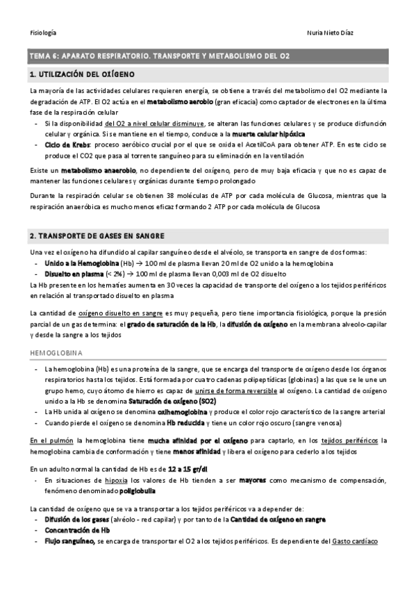 TEMA 6 - Transporte y metabolismo de O2