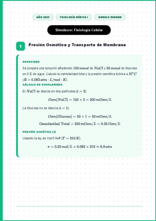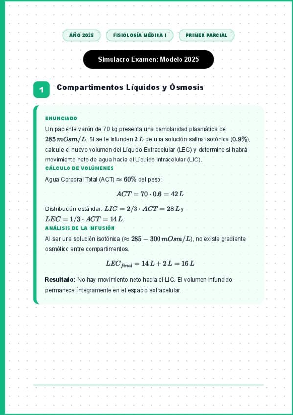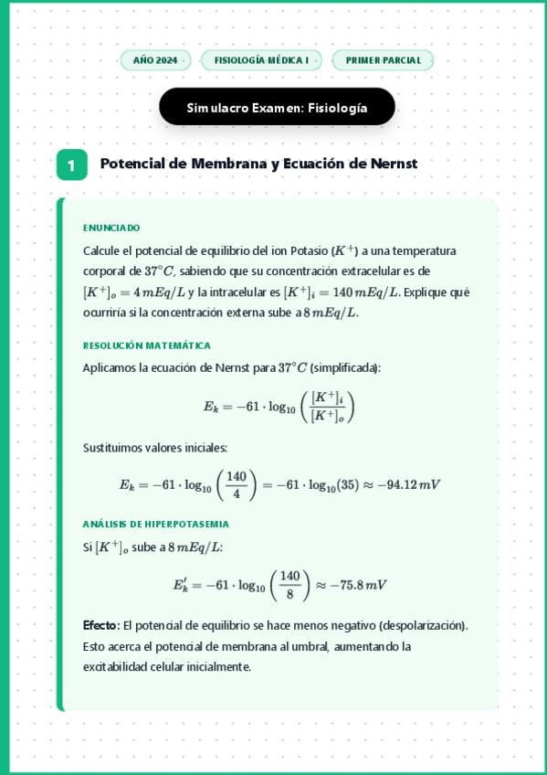 Simulacro Examen - Fisiologia Medica I