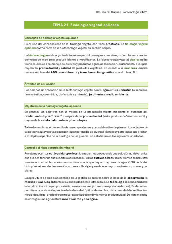 Apuntes temario completo Fisiología Molecular de Plantas