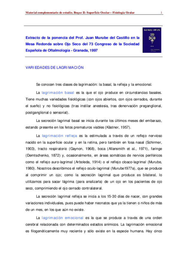 Recopilatorio de preguntas resueltas de exámenes del bloque 2 (sistema lagrimal) de la asignatura Fisiología ocular