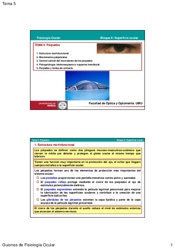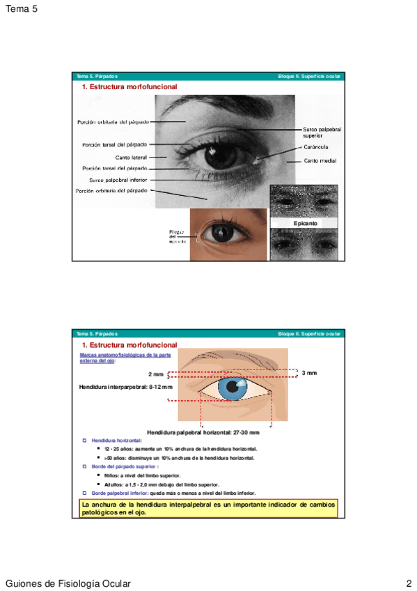 Recopilatorio de preguntas resueltas de exámenes del bloque 2 (párpados tema 5) de la asignatura Fisiología ocular