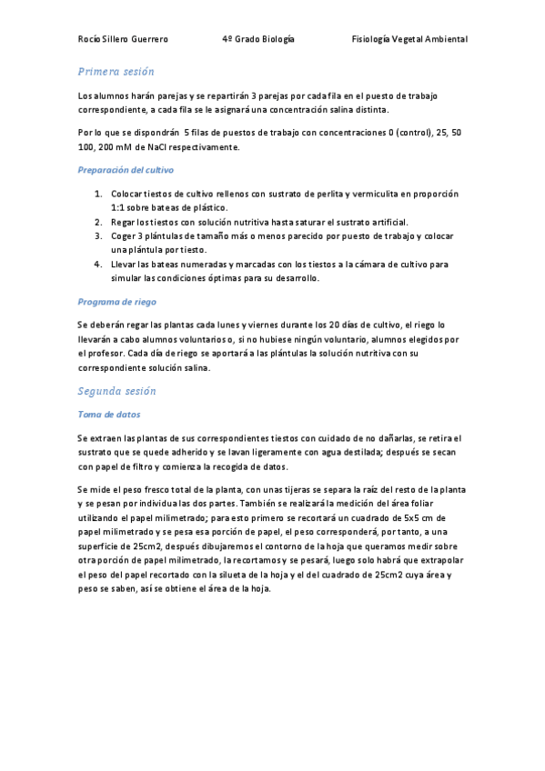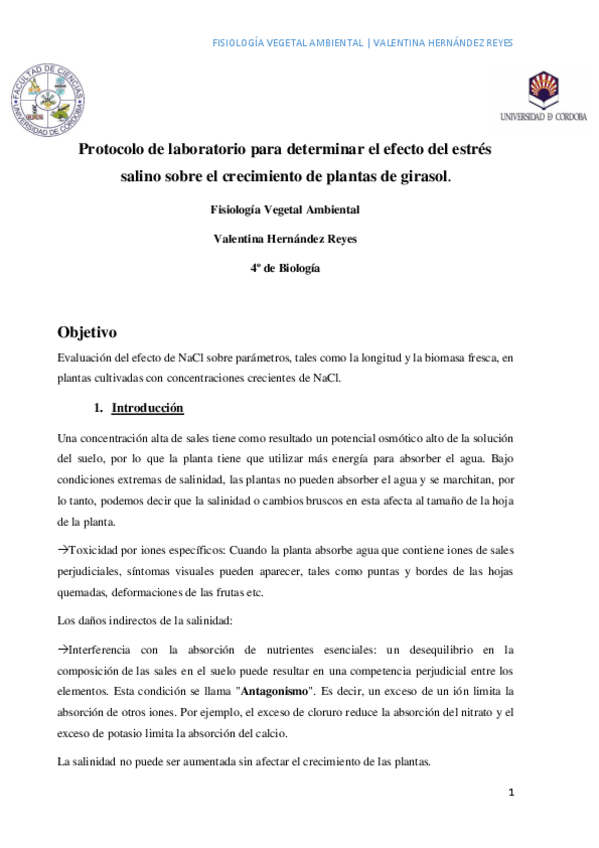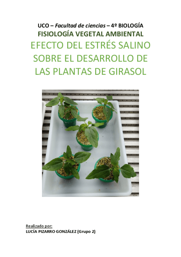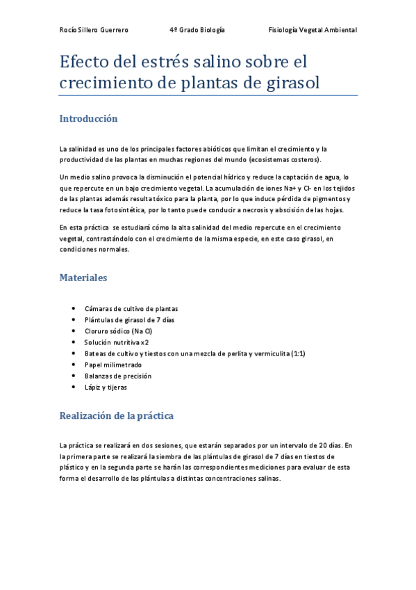 He publicado nuevos trabajos de 4º Fisiología Vegetal Ambiental: Efecto del estrés salino sobre el crecimiento de plantas de girasol protocolo rocio final.pdf