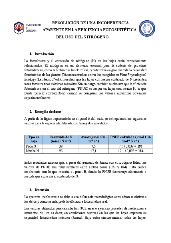 He publicado nuevos trabajos de 4º Fisiología Vegetal Ambiental: IncoherenciaNitrogeno.pdf