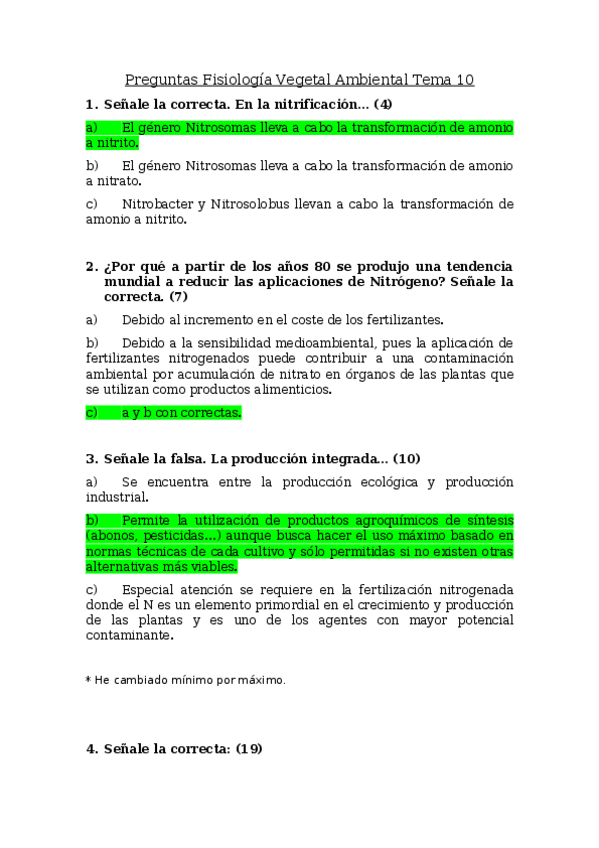 He publicado nuevos examenes de 4º Fisiología Vegetal Ambiental: Preguntas varias examenes