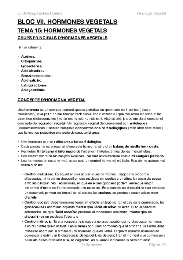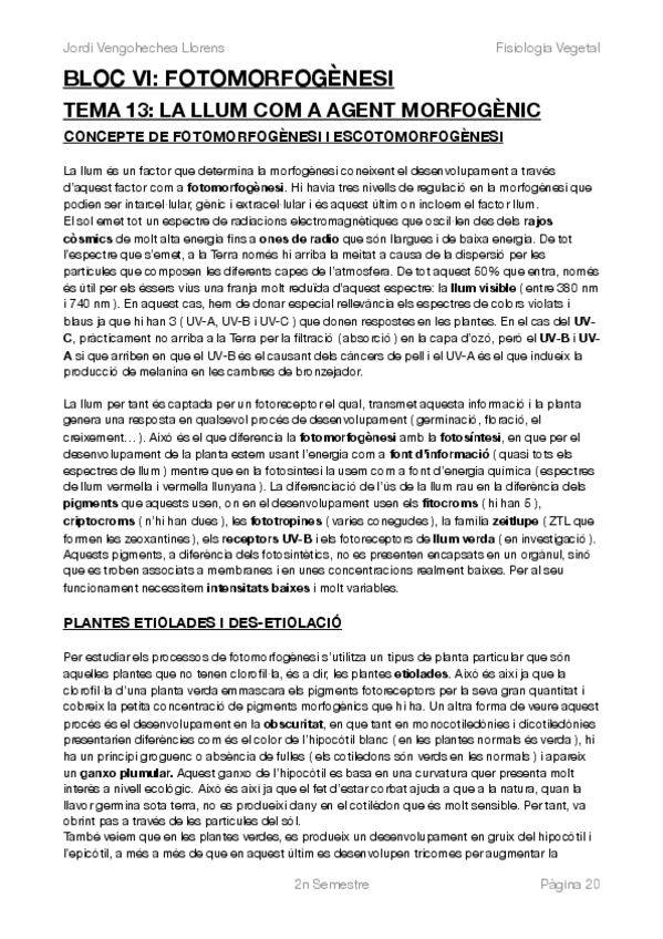 Apunts de Fisiologia Vegetal del 2n semestre del grup de tardes. En aquest any, es van realitzar alguns temes menys que els especificats en el pla docent.