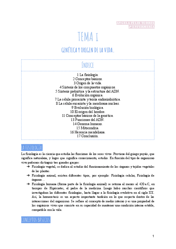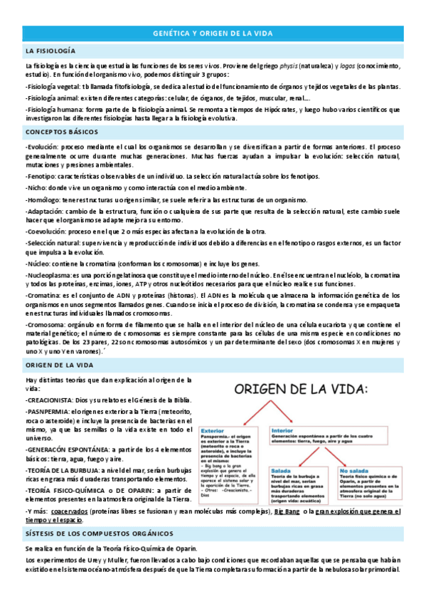 TEMA I - GENÉTICA Y ORIGEN DE LA VIDA.