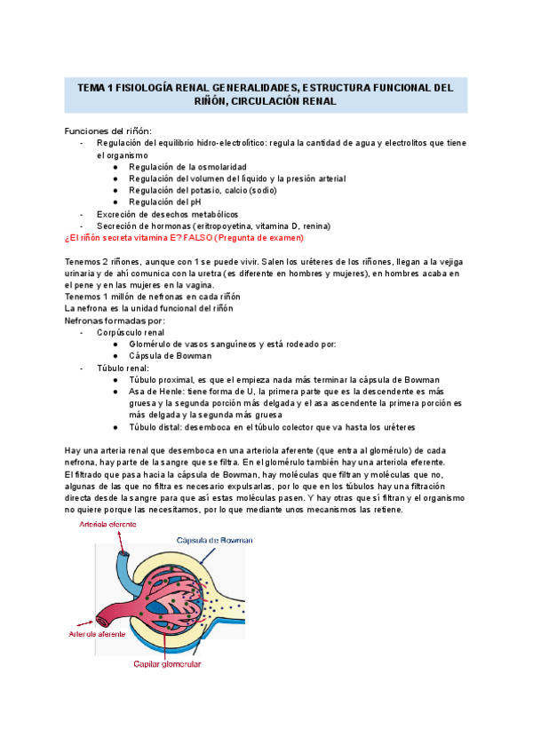 Unidad temática 5. Fisiología del Sistema Renal