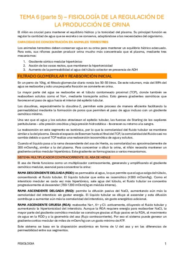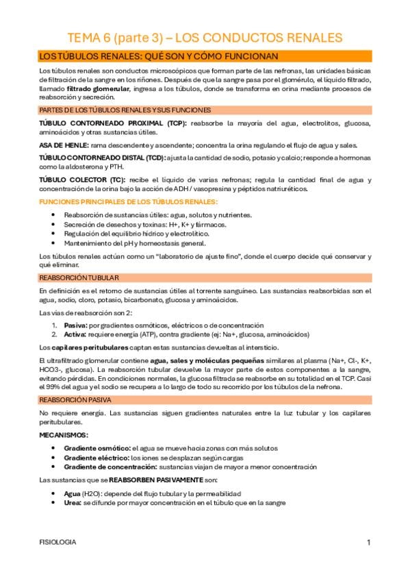 He publicado nuevos apuntes de 2º Fisiología: BLOQUE 6 - S. RENAL