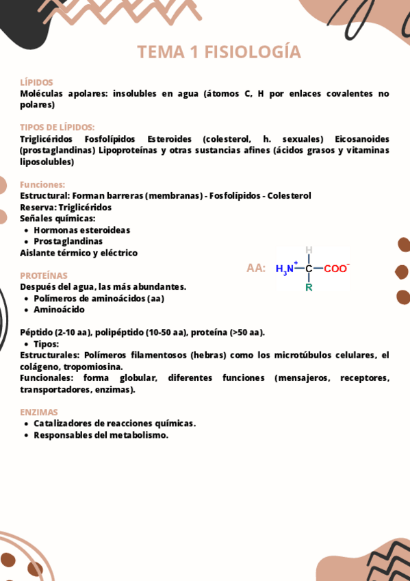 Resúmenes todos los temas fisiología 1º