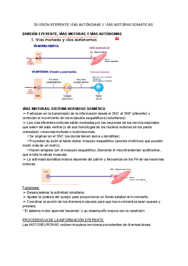 Apuntes sobre la explicación del sistema nervioso central (rama eferente) estos apuntes explican el reflejo miotático, el sistema nervioso autónomo y somático, entre otros.