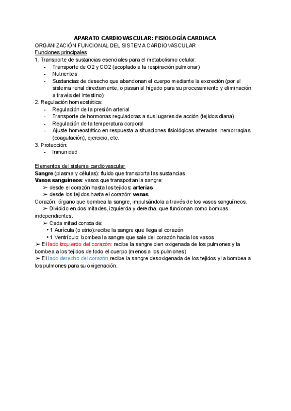 Explicación del sistema cardiovascular. Apuntes de fisiología bastante concretos, fáciles de entender y con imágenes que facilitan la comprensión del tema.