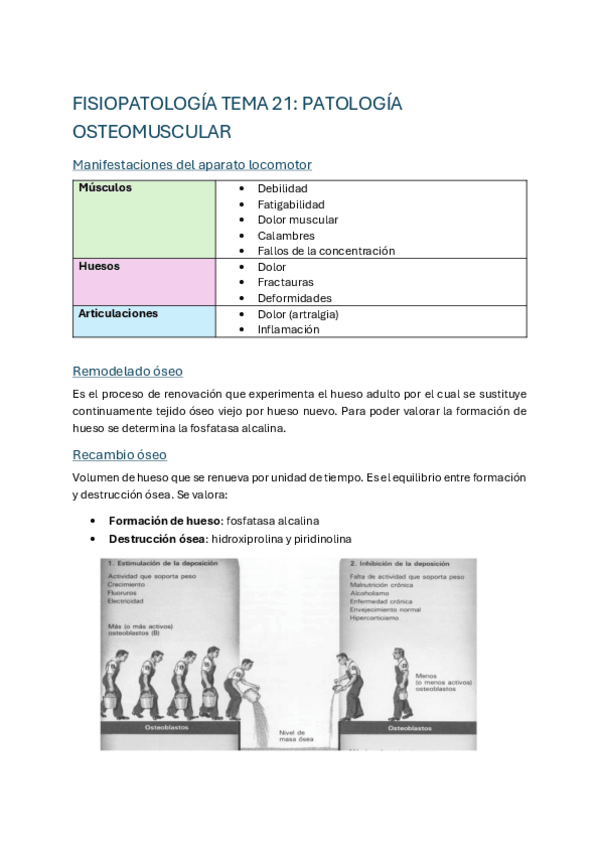 Apuntes fisiopatología tema 21: osteomusucular (remodelación y recambio óseo, artritis y artrosis) con fotos y tablas, explicado simple