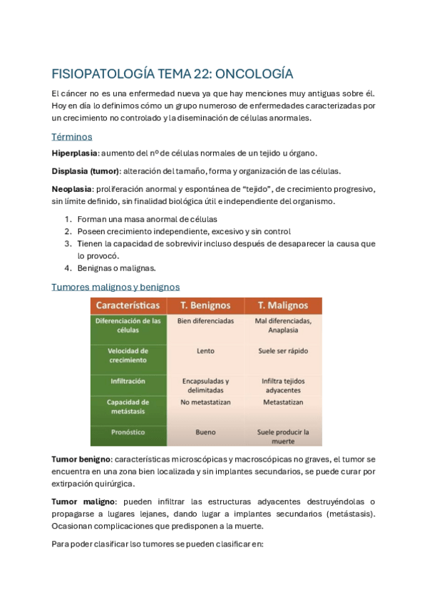 Apuntes fisiopatología tema 22 ONCOLOGÍA (Términos, tumores, síntomas, etiología, factores de riesgo, detección precos, cribado, prevención) FOTOS Y TABLAS, EXPLICADO SIMPLE