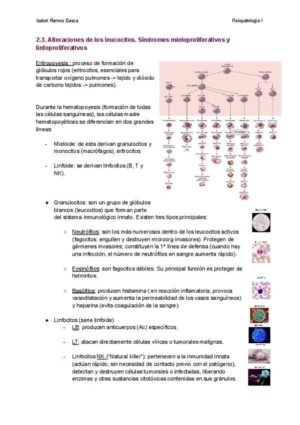 Alteraciones de los leucocitos. Síndromes mieloproliferativos y linfoproliferativos