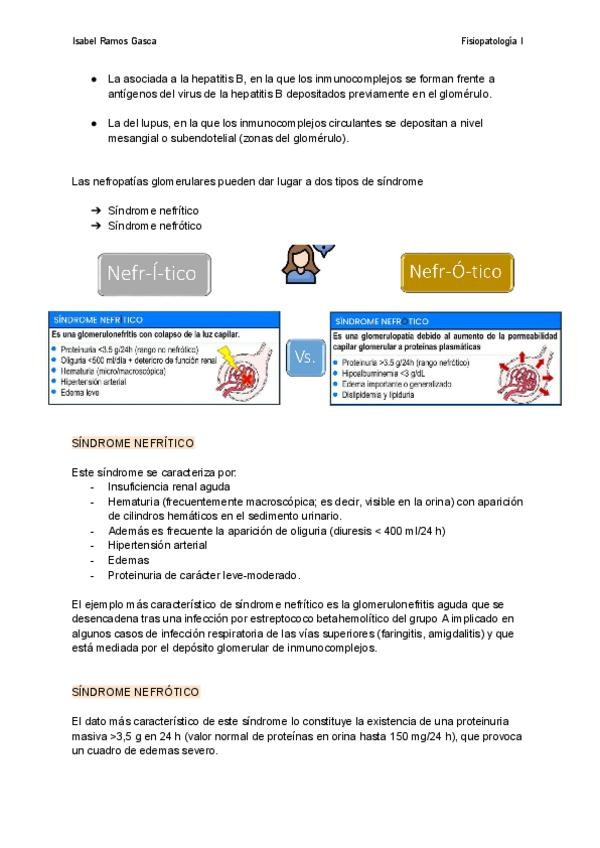 Estudio de las nefropatías glomerulares. Glomerulonefritis, síndrome nefrítico y nefrótico. Estudios de las nefropatías tubulares.