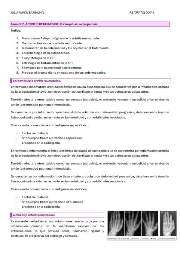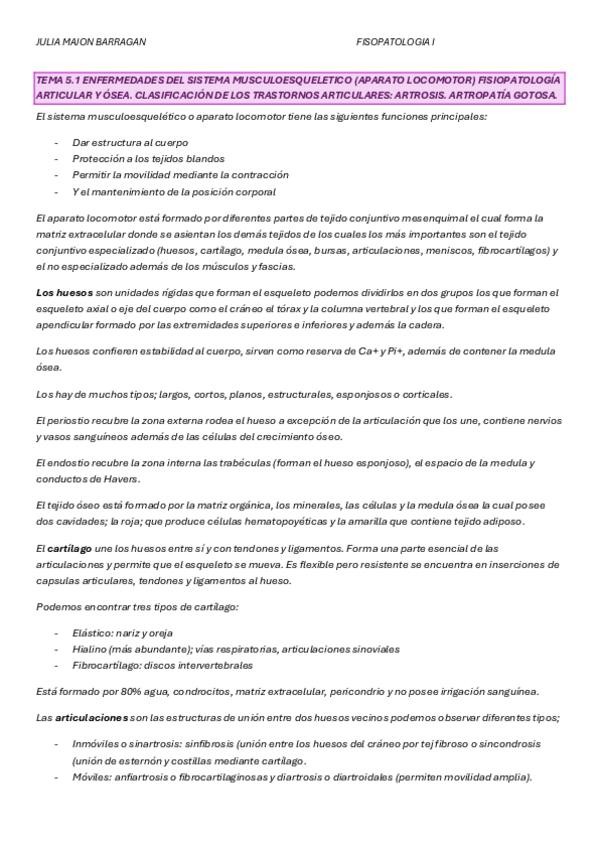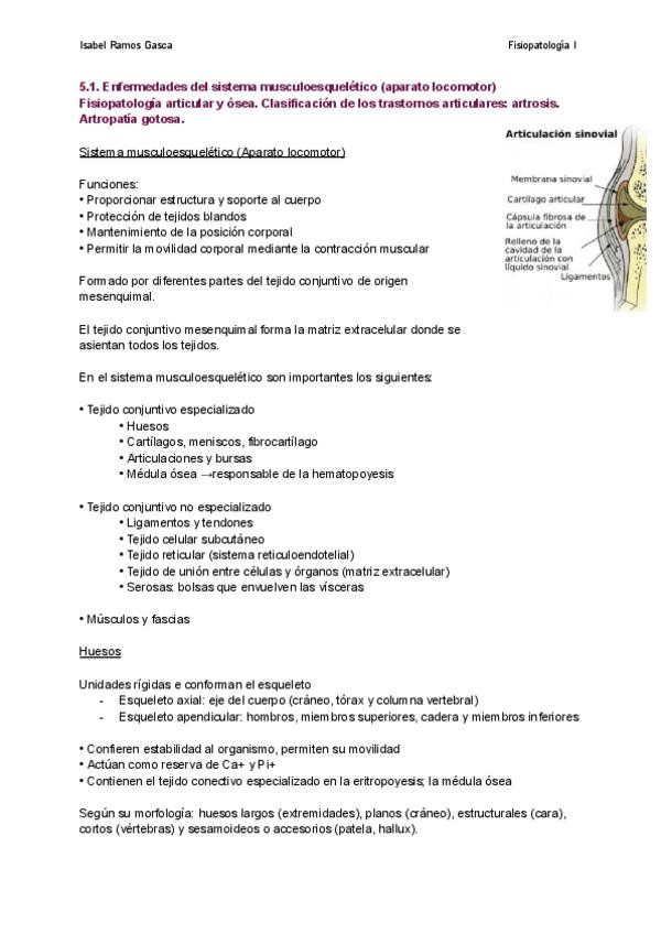 Enfermedades del sistema musculoesquelético (aparato locomotor) Fisiopatología articular y ósea. Clasificación de los trastornos articulares: artrosis. Artropatía gotosa.