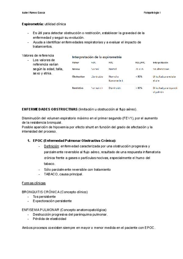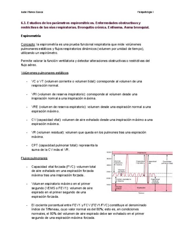 Estudios de los parámetros espirométricos. Enfermedades obstructivas y restrictivas de las vías respiratorias. Bronquitis crónica. Enfisema. Asma bronquial.