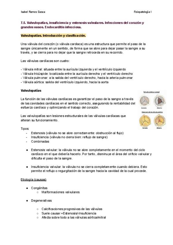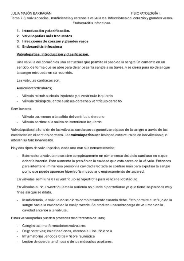 Valvulopatías, insuficiencia y estenosis valvulares. Infecciones del corazón y grandes vasos. Endocarditis infecciosa.